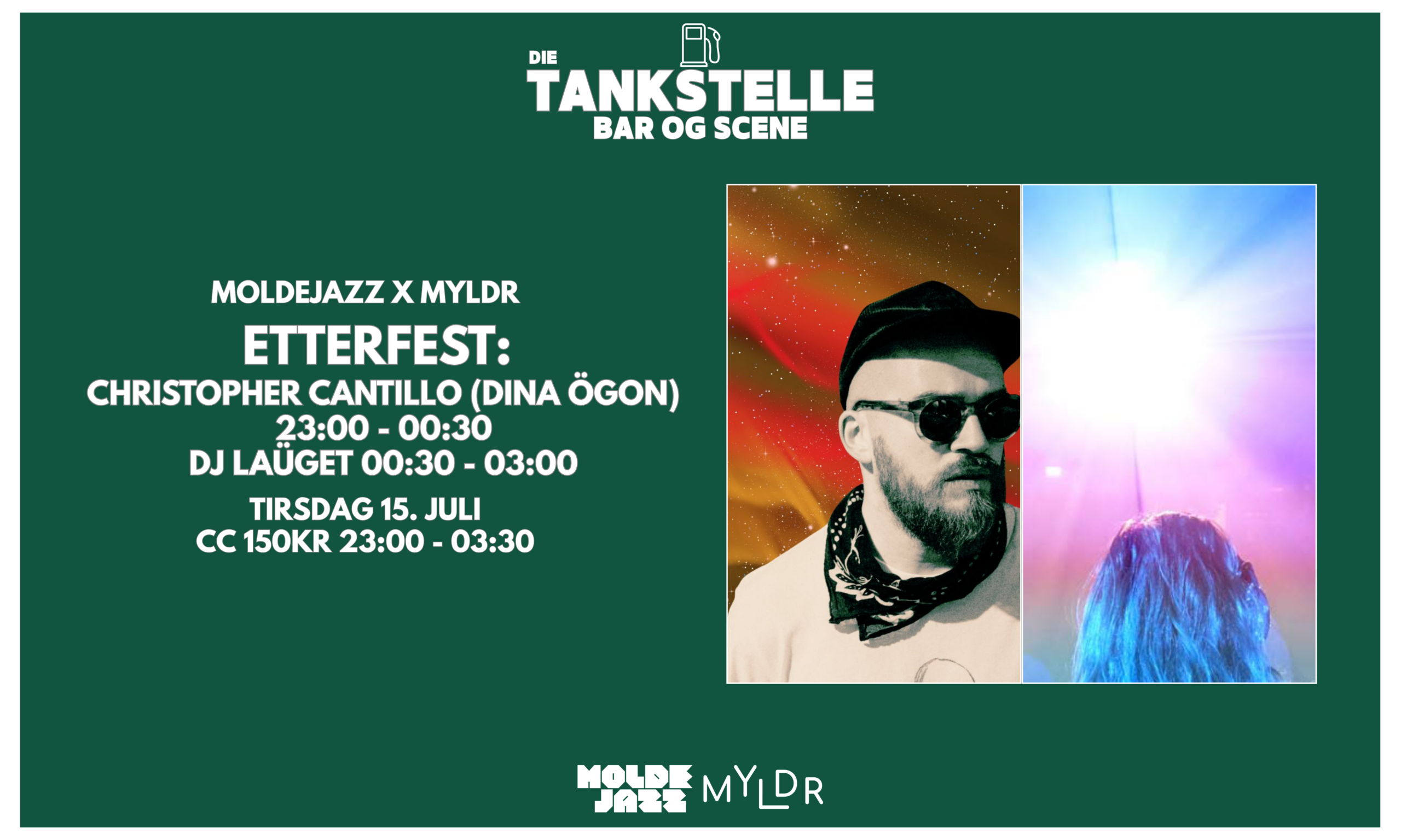 Under Moldejazz 2025 har vi skapt et spennende samarbeid mellom Moldejazz og Myldr på byens nye sted med stor D – Die Tankstelle! Her blir det DJs hver kveld fra 23.00 til 03.00, og ikke hvilke som helst DJs. Vi har håndkurert noe av det kuleste som finnes akkurat nå, basert på festivalens program, og tanken er at Die Tankstelle skal være en naturlig forlengelse av Moldejazz-festen – om natta. Kapasiteten er begrenset, så kom tidlig for å danse og ha det bra med oss!