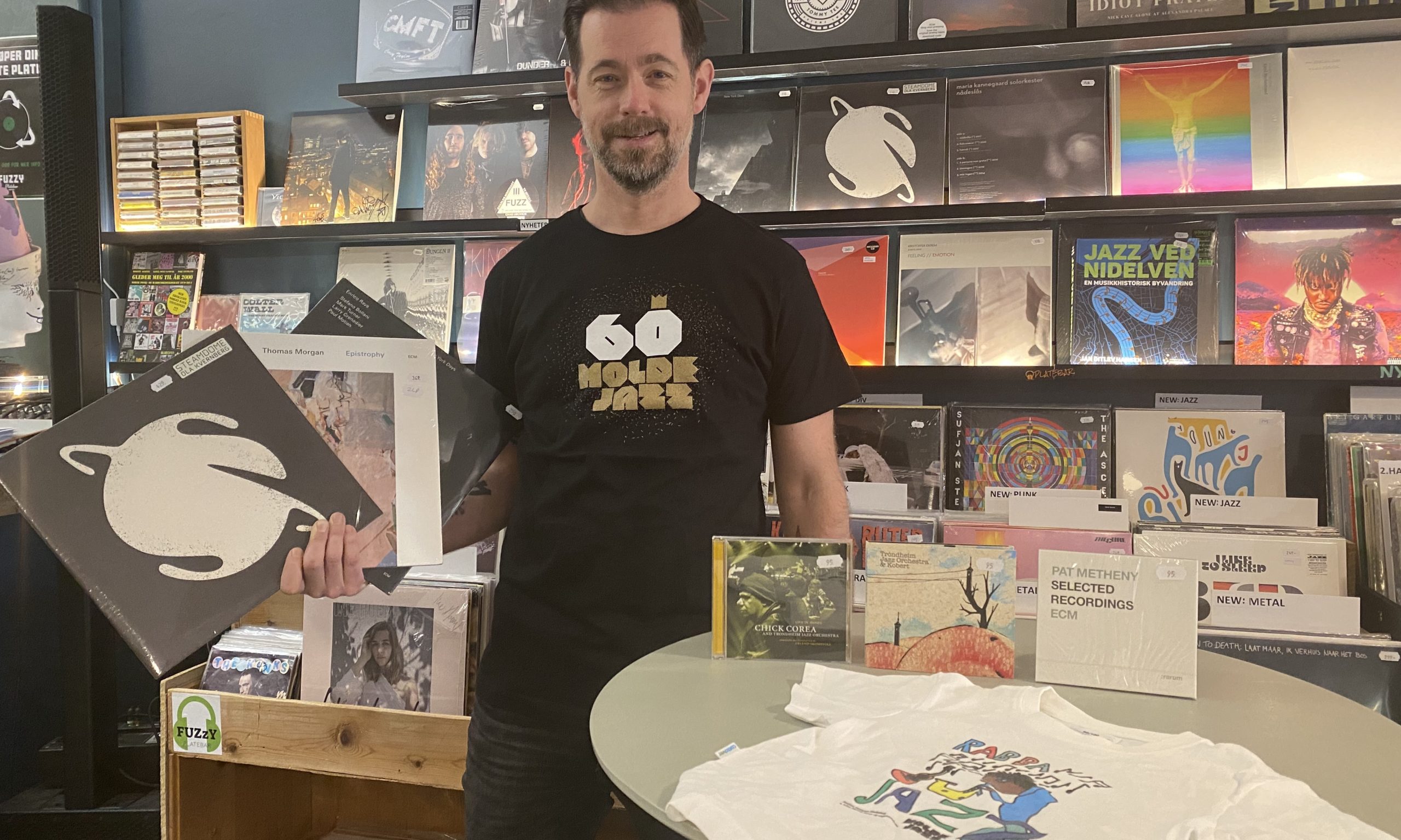Moldejazzskjorta for barn og voksne er i salg hos Fuzzy Platebar i Storgata.